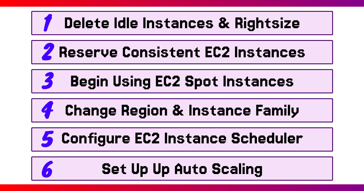 There are many ways to reduce your Amazon EC2 Spend. Some of the most common examples are… (In order from to easiest to most difficult)